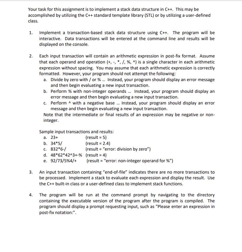 Solved Your Task For This Assignment Is To Implement A Stack Chegg Com